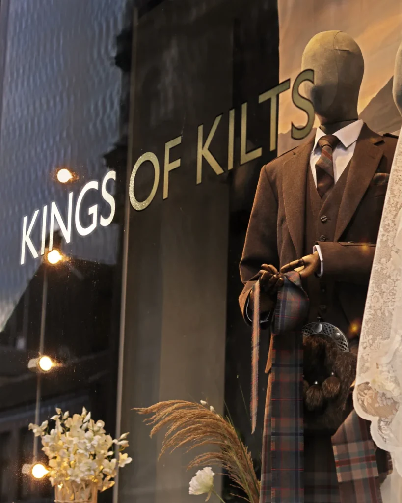 Feeling inspired to get kilted up for your big day? The Kings of Kilts experience is just an appointment away. Call us on 0141 280 3398 to book an appointment in-store or go online with a virtual fitting. If you’re in Glasgow in the coming weeks, make sure to take a stroll by this breathtaking display.